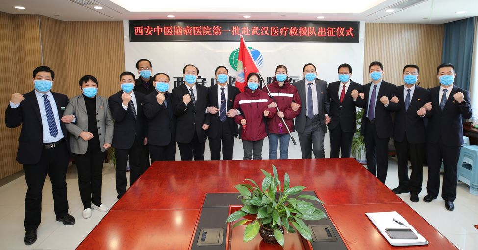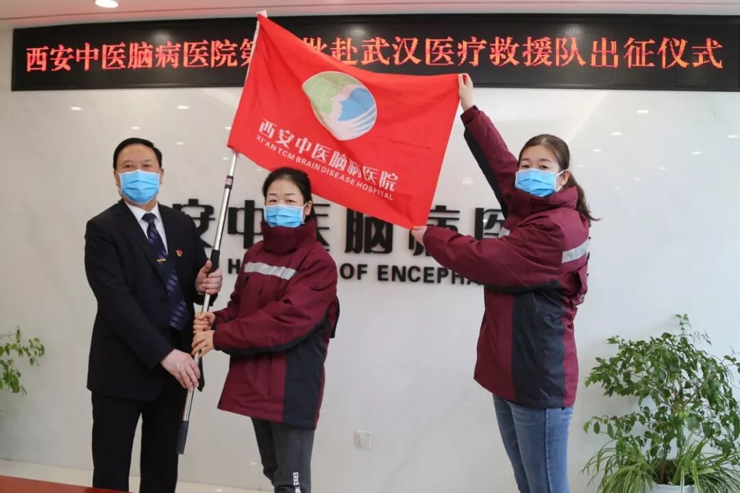 12个小时后,一个简短而温馨的出征仪式在西安中医脑病医院举行。医院院长宋虎杰,党总支书记谢永兴,常务副院长刘宝荣,业务副院长闫炳苍,副院长董昌虎、卫元斌、卓坤利、杜晓刚及护理部主任胡冬芳、办公室主任王军峰及三编办负责人郑怀林等作为“娘家人”代表为她们的出征送行。