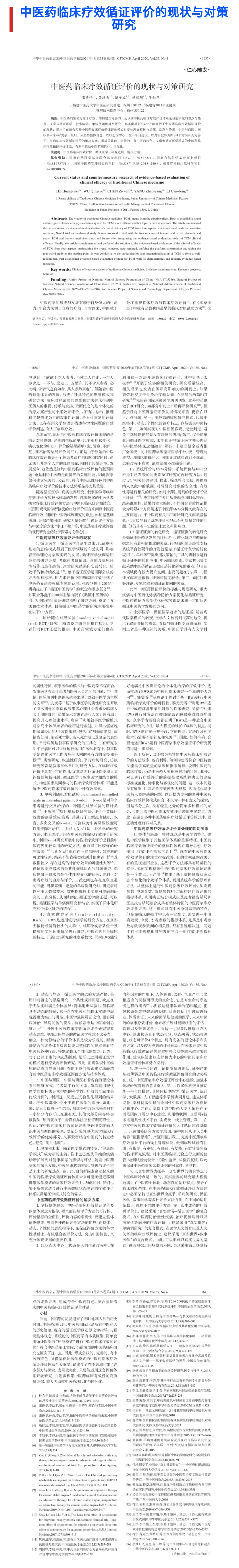 仁心雕龙 | 雷黄伟等:中医药临床疗效循证评价的现状与对策研究