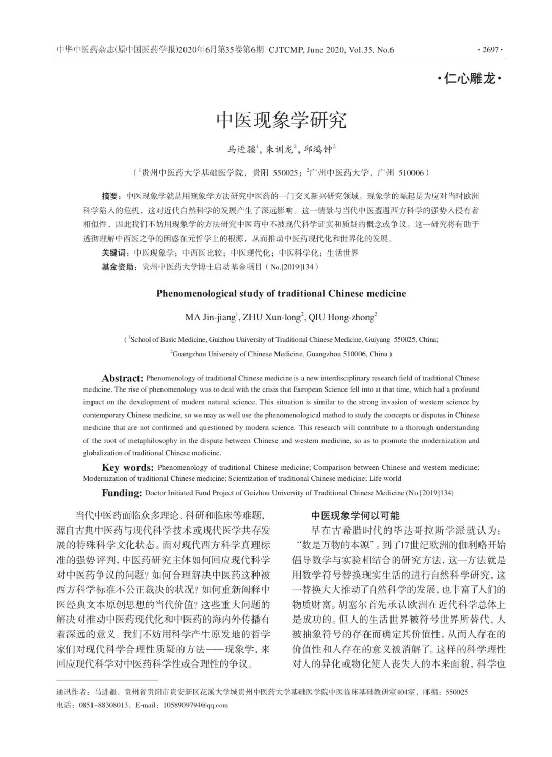 医者仁心,治病犹雕龙也。心生而言立,言立而文明,自然之道也。中医药学是打开中华文明宝库的钥匙。文以载道,文亦传道。义典则弘,文约则美,经典的魅力似乎也在于此。中华医药,博大精深,内难以降,与天地准,故能弥纶天地之道。先天而天弗违,后天而奉天时,天且弗违,而况於人乎,而况于鬼神乎?此乃大道之境界也! 庚子岁至,新冠肺炎流行寰宇,中华医药勇战抗疫前线,立威于世界。中西合璧,攻克时难,先圣智慧,恩泽于后世千秋万代。“传承精华,守正创新”已成为中医药行业发展的主旋律、新要求。我们岐黄传人一定要把论文写在神州大地上,写在人民的心目当中,惟其如此,方可经世致用,流芳人间! 我们计划从2020年5月开始转载《中华中医药杂志》的“仁心雕龙”专栏美文,分享给大家,希望能够达到“思接千载,视通万里”的效果,继往圣大道绝学,开中医药发展新局面。 |