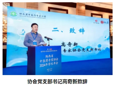首先由陕西省中医药专家协会党支部书记高奇新致辞,恭祝陕西省中医药专家协会2024年学术年会暨第六届南京同仁堂国医国药发展论坛圆满召开。