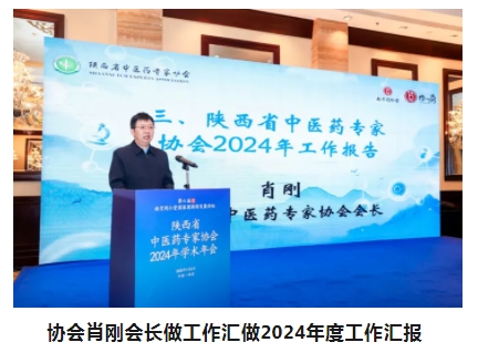 其次由陕西省中医药专家协会肖刚会长做2024年度工作汇报,肖会长从组织建设、学术交流与社会服务、工作中存在一些不足和挑战方面进行总结。