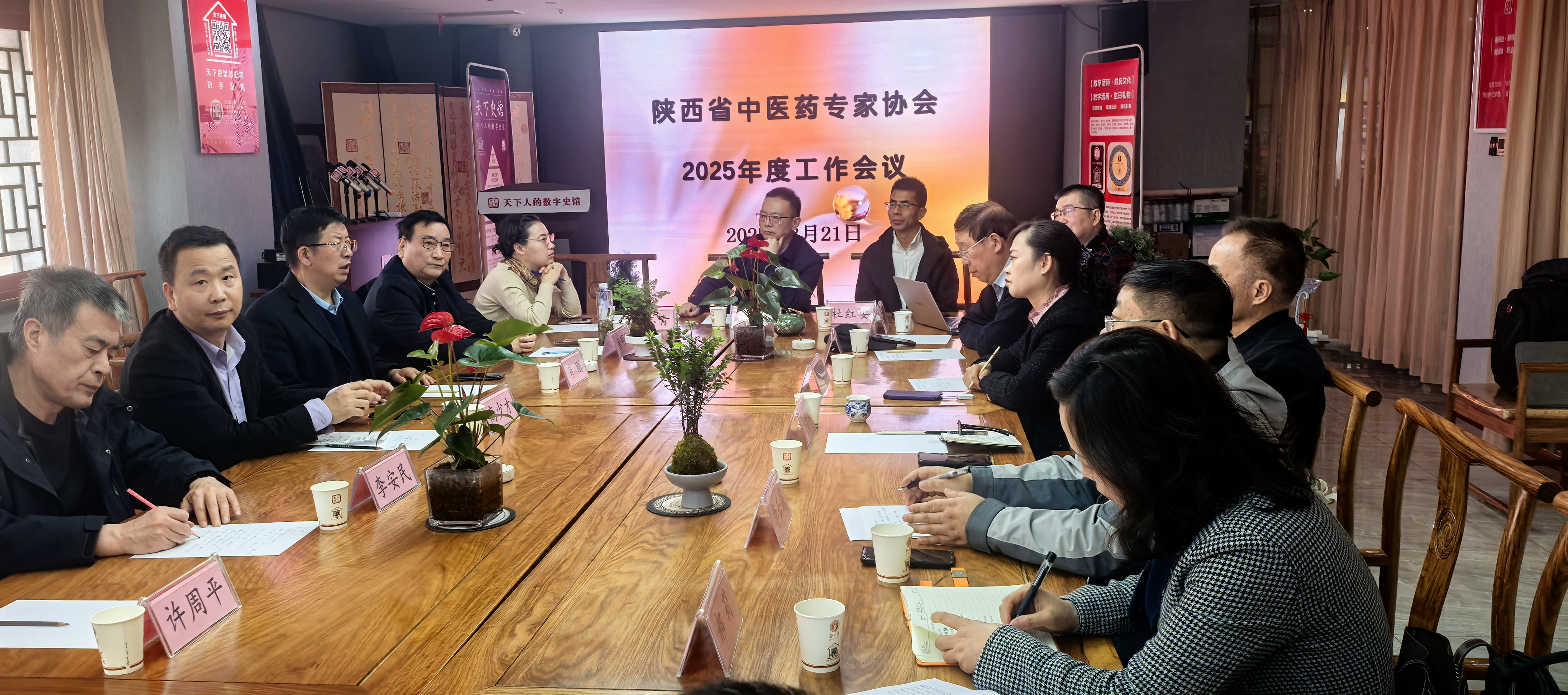 2025年3月21日下午,陕西省中医药专家协会2025年工作会议在西安天下史馆召开,陕西省中医药专家协会会长肖刚、秘书长高少才,协会理事、北京中医药大学孙思邈医院副院长张叔玲,协会中药专家分会秘书长杜红安,协会智库委员、陕西省名中医戴双明,协会芒针传承分会(筹)负责人李云海,天下史馆戴甲奇,特邀嘉宾陕西省卫健委原二级巡视员刁卫平、陕西省非物质文化遗产许氏正骨传承人许平周、陕西面京中医药研究院院长张明科等参加会议。本次会议由协会秘书长高少才主持。